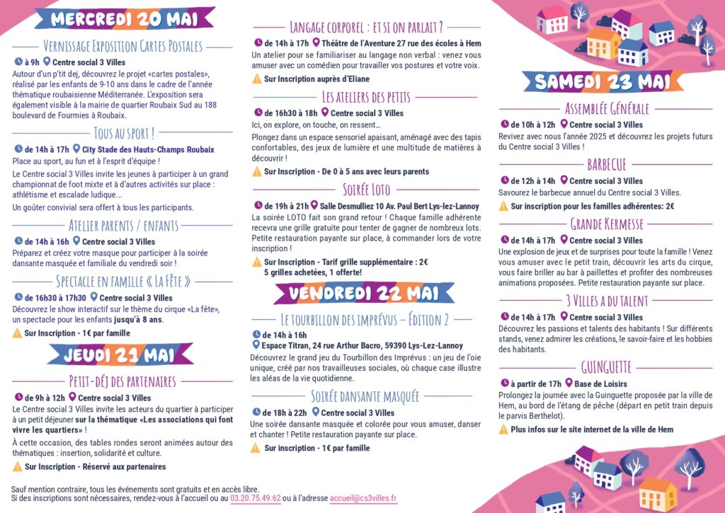 Le Centre social 3 Villes vous invite pour 4 jours de fête en famille : 20,21,22 et 23 mai 2026